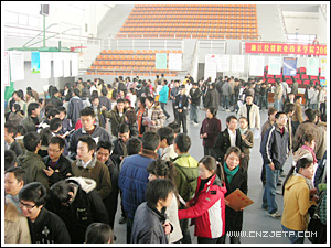 12月26日下午,我院2007届毕业生就业招聘会在体育馆隆重举行。本次招聘会共有来自省内外的140多家企事业单位报名参会,实际到会的单位为107家。其它40几家报了名而未参加的单位主要是受大雾天气影响交通,未能及时到会,这些单位表示要通过其它方式来校招聘。本次实际参会的107家单位带来了1500多个就业岗位。