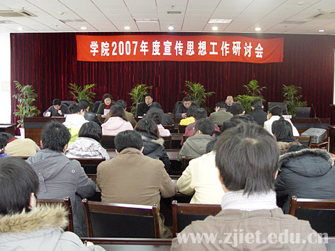 1月18日下午,学院2007年度宣传思想工作研讨会在视频会议室隆重举行。学院领导童学敏、李曙明、潘素芳、周文根、潘新华,相关职能部门负责人,各党总支书记、学生支部书记、行政直属支部书记,两课教研室全体教师,全体辅导员,院报通讯员和思政论文投稿作者出席了会议。会议由党委副书记潘素芳同志主持。