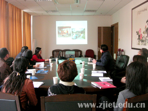 沈银珍主任首先介绍了我院英语专业与公共英语的教学改革和发展情况,重点介绍了我院英语实训基地与实训课程的建设和发展状况。双方对我院进行的英语教学改革,特别是公共英语的课程与考试改革进行了交流和探讨。刘黛琳主任对我院英语专业与公共英语的教学改革和发展做了充分的肯定,并指出要找出一条符合高职高专学生的学习英语的路子任重而道远。希望我院再接再厉,努力探索更好的教学模式和教学理念,增强学生对英语学习产生的兴趣,使英语学习为学生将来的工作和可持续发展服务,从而为培养高素质技能型人才的培养目标打好基础。