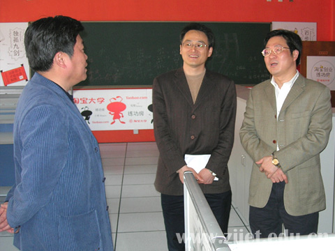 4月18日,杭州经济技术开发区副主任詹国平一行4人来我院考察。院党委书记童学敏、院长李曙明、副院长周文根以及学院有关部门的负责同志与来宾交流了学院校内生产性实训基地建设的有关情况。双方就在“工学结合”的办学模式下,如何筹建好“杭州经济技术开发区电子商务创业园”等有关问题进行了协商。
