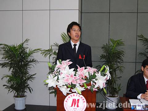 兄弟院校代表浙江金融职业学院学生会主席郑凯同学代表各兄弟院校学生会致了贺辞。