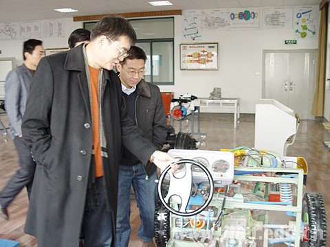 学院党委书记童学敏、院长李曙明向阮茂荣处长介绍了学院发展情况,并陪同考察校内实验实训基地。