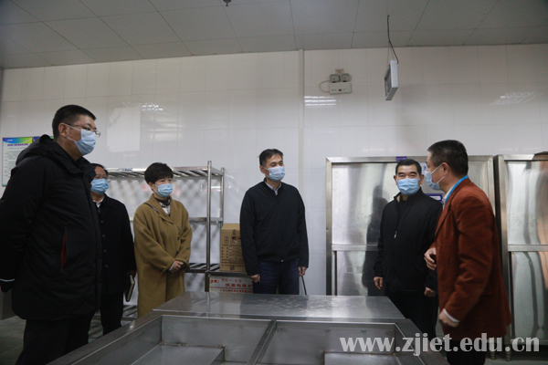 张建一行检查了门岗、观察点、食堂、医务所等场所和防疫物资储备情况。座谈会上,听取了陈德泉校长关于学校疫情防控工作汇报。张建充分肯定我校疫情防控工作成效,对下一阶段工作提出要求:一是春季开学临近,要把各项疫情防控工作落细落实,尤其是要做好源头管理,始终绷紧疫情防控这根弦,履职尽责不放松,要详细筹划各项工作,执行好网格化管理,层层传达压力与责任,确保万无一失。二是对照省和钱塘新区疫情防控工作要求,严格师生出省审批和健康打卡制度,做好重点地区返校师生跟踪监测。三是做好疫情防护知识宣传,强化正面疏导,强化过程管理与督导检查,切实将各项要求落到实处,学校各部门要通力协助,把各项疫情防控举措落实到位,确保校园安全与师生健康,确保学校教书育人各项工作顺利开展。