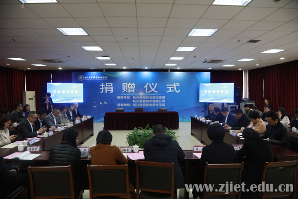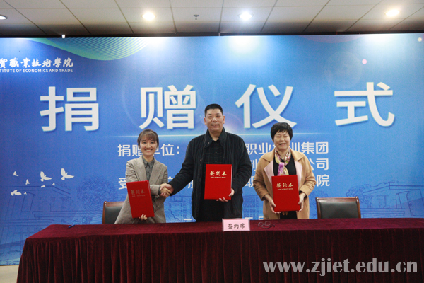 本次捐赠,是学校办学历史上获得的最大数额的社会捐赠,为学校“十四五”起步发展迎来“开门红”,为进一步推动学校教育事业实现新一轮高质量发展注入了“新动力”。捐赠仪式上,杭州西湖职业培训集团董事长毛益飞、杭州豪富制衣有限公司董事长查洁君分别代表捐赠方致辞。学校校长陈德泉、副校长蒋丽君分别代表学校、教育发展基金会与杭州西湖职业培训集团、杭州豪富制衣有限公司签订捐赠协议。