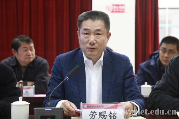 党委书记劳赐铭代表学校向两家企业爱心奉献表示衷心感谢。他指出,两家企业在致力于自身快速发展、为社会创造财富价值的同时,情牵经贸、心系教育、热心公益、回报社会的善举和企业精神,让人备受感动!他强调,学校将以习近平新时代中国特色社会主义思想为指导,全面贯彻落实党的教育方针,严格做好捐款资金的管理和使用,确保款项用到学校事业发展的刀刃上、关键处,以坚实有力的行动朝着建设“中国特色、国内一流、国际知名”高水平职业大学的目标努力奋斗,为职业教育发展贡献力量,为建党100周年献礼。