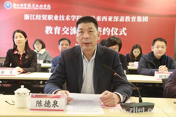 陈德泉在致辞中简要介绍了学校办学成果以及国际交流合作基本情况。他指出,马来西亚是“一带一路”倡议的重点合作国家,学校十分重视与马来西亚的合作,希望双方能够通过友好交流,共享先进教学理念和优质教育资源,在师生交流、专业共建、技能培训、学术研究等领域开展合作,共同打造“职教共同体”,着力提升两校国际化人才培养水平,为推动两国经济发展提供人才支撑。