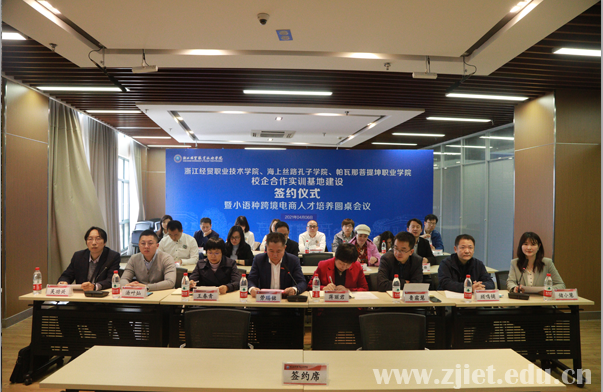 签约仪式后,国际贸易系领导班子与企业代表深入会谈,在梳理目前学校“双师型”教师队伍发展不够充分,人才培养与学生就业、创业、升学衔接不够精准,生产性实训与效益产出不够平衡等问题的基础上,一致认为需合力加快建设区域中小微企业跨境电商服务平台。希冀通过“十四五”期间引企驻校的系列具体举措,将该平台打造成为学校与企业共成长、师生与企业共收益、企业与企业共创新的集成载体。目的是培养一批新型贸易合伙人,形成一批在国内有影响力的校企合作课程,凝练一批可复制、可推广的成果经验。