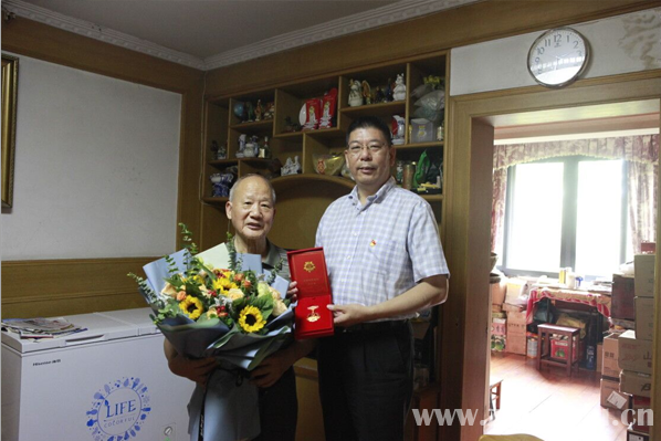 我校共有9名老党员获颁“光荣在党50年”纪念章,领导们先后来到肖锡镇、李伟生、卓祥侨、谢佐南、吴亨年、李锡泉、何美宝等老同志家中,为他们颁发纪念章,送上鲜花和慰问品,并同他们亲切交谈,询问了解他们的身体和生活状况,聆听他们讲述参加工作、投身学校建设的奋斗故事。