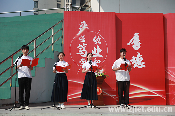 “青春逢盛世,奋斗正当时;祖国共进,与时代同行,奏响新时代青春之歌!”典礼现场,学生代表带来的情景朗诵节目《相约百年 梦起经贸》,激励着全体新生不负青春、砥砺奋进,书写新的人生华章!全体师生齐声高喊“请党放心,强国有我”,将现场氛围推向了高潮,开学典礼在《没有共产党就没有新中国》嘹亮的合唱声中落下帷幕。