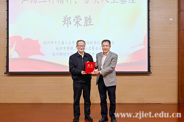 郑荣胜围绕“什么是劳模精神、劳动精神、工匠精神,以及以三种精神来夯实人生基座”两方面阐述了劳动教育的丰富内涵和核心要义。他指出,弘扬“三种精神”,一是总书记有指示,二是社会有呼声,三是杭州有实践和探索。强调劳动教育植根中华优秀传统文化,承载立德树人理念,对推动教育创新、建设教育强国具有重大意义。他认为新时代劳动教育要搭建平台、打通关节、整合资源、融合机制。他勉励学生要坚定执着,夯实信心信念的基座;要勤奋刻苦,夯实知识技能的基座;要求真务实,夯实奉献社会的基座;要追求卓越,夯实人生出彩的基座。