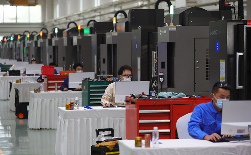 参赛选手在在2022“一带一路”暨金砖国家技能发展与技术创新之“通用技术杯”数控多轴加工大赛中比拼(2022年11月10日摄)。新华社记者 杨青 摄